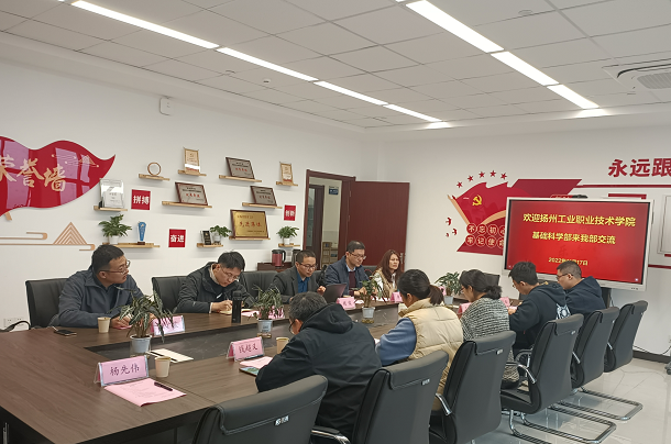 11月17日,扬州工业职业技术学院基础科学部钱俊主任等一行5人来我部交流学习。基础课部王志萍主任等在产教融合二期大楼804会议室热情接待了钱主任一行。