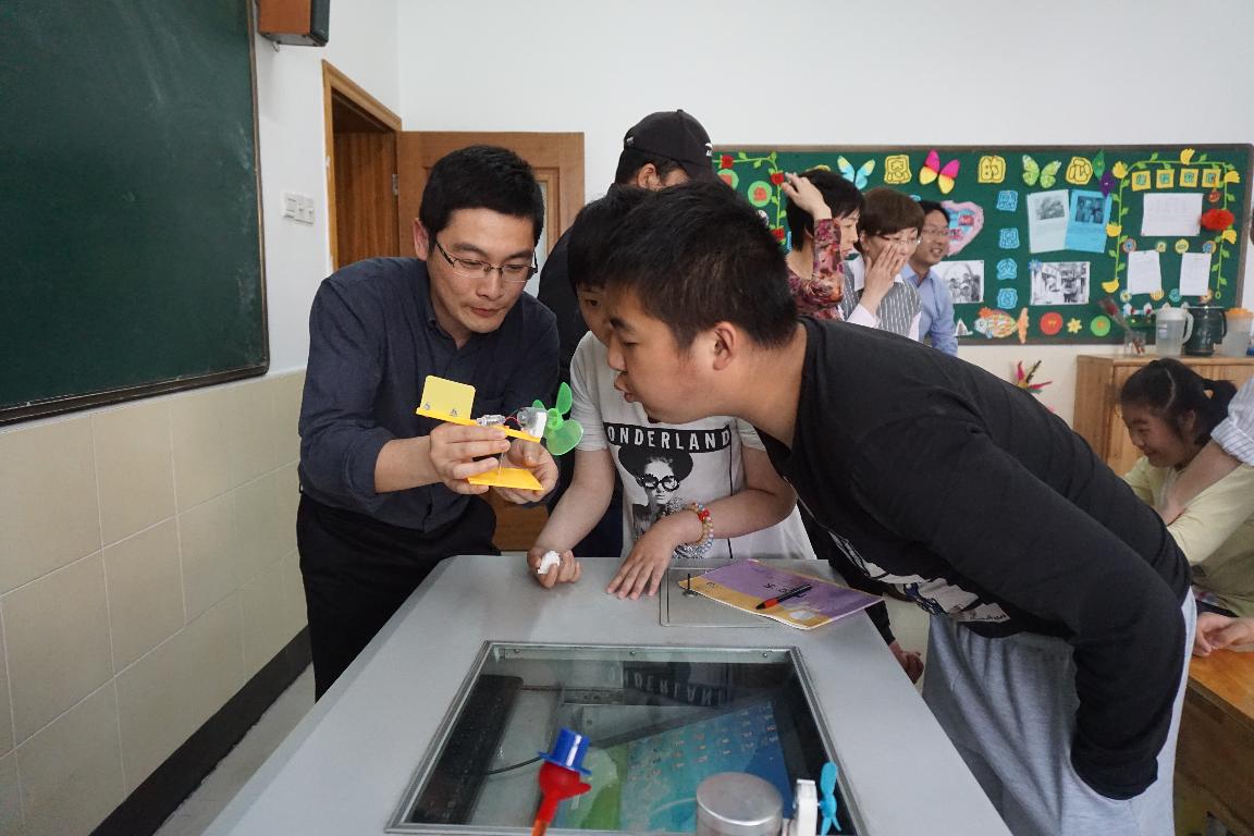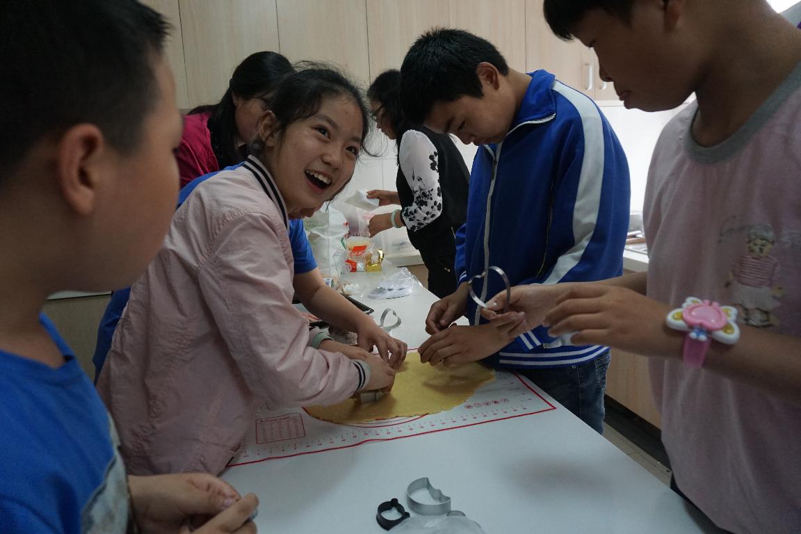 首先,孩子们表演了他们拿手的节目。其中被媒体称为无锡“雨人”的智障孩子过镕给大家背诵了十余条公交线路,无一差错,得到了大家的阵阵掌声。接着,活动正式开始。本次活动分成两个组,一组由边露老师牵头带领孩子们一起烘焙饼干,体验生活中的乐趣;另一组由物理老师们牵头和孩子们一起动手开展趣味物理实验,让孩子们通过神奇的物理现象,了解一些自然科学知识。